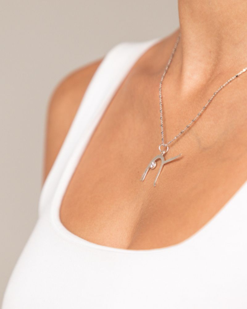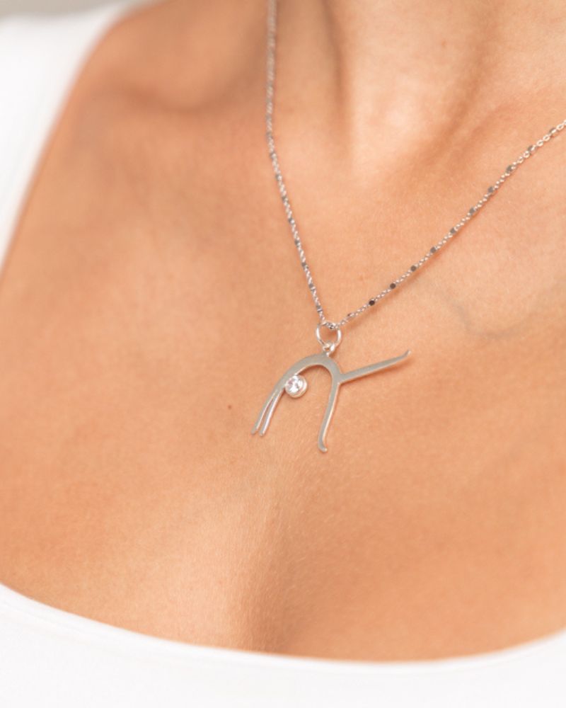 Este colgante unifica la fuerza y equilibrio del yoga con la elegancia y estilo de la joyería.