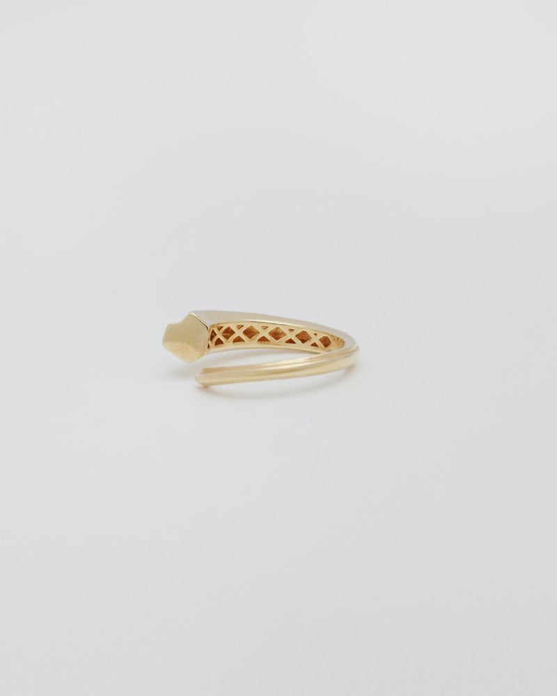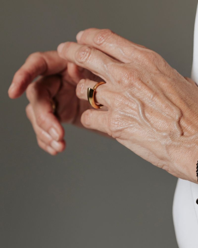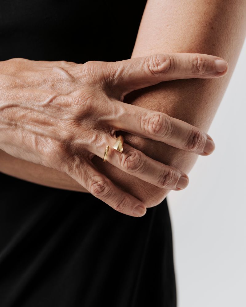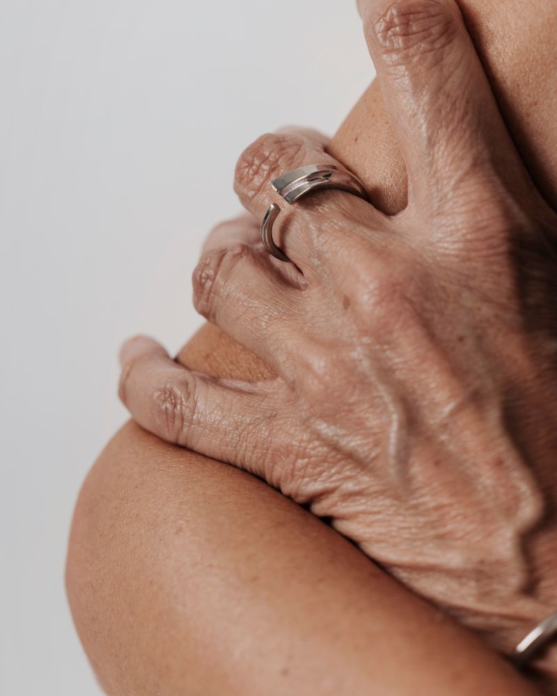 Una sortija delicada pero con presencia, que envuelve tu dedo como una línea de luz. Su diseño limpio y fluido está inspirado en la fuerza que nace desde dentro y se proyecta con cada movimiento.